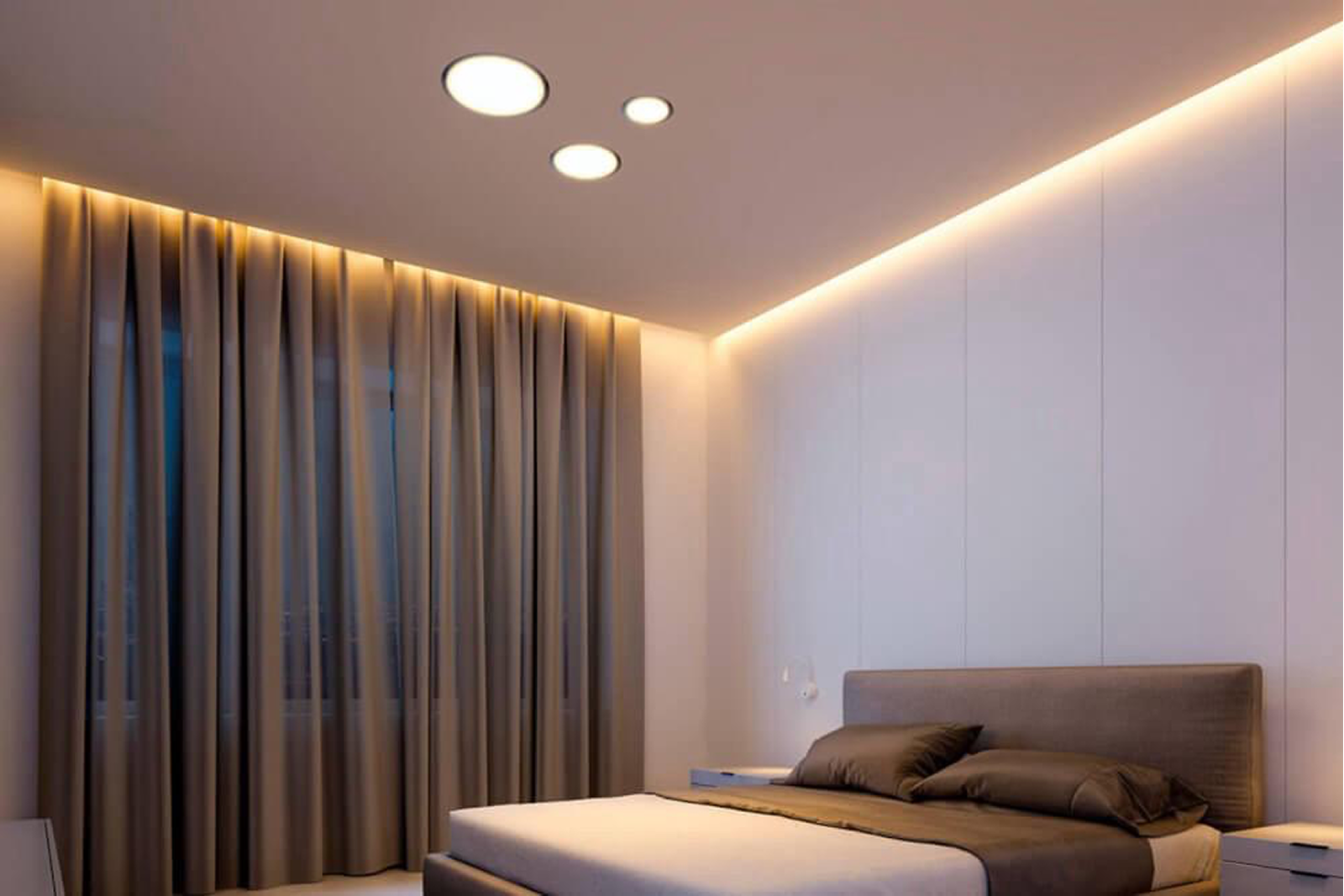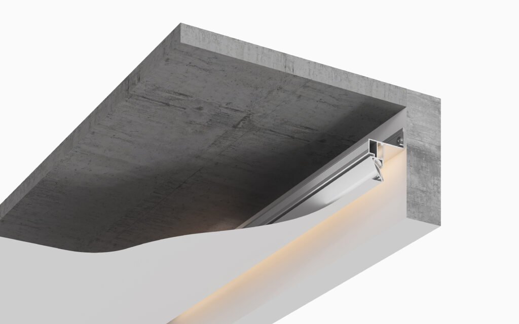 a benzii LED și face ca efectul de tavan „plutitor” să fie mai adânc și mai voluminos. Capătul lateral al profilului poate fi închis